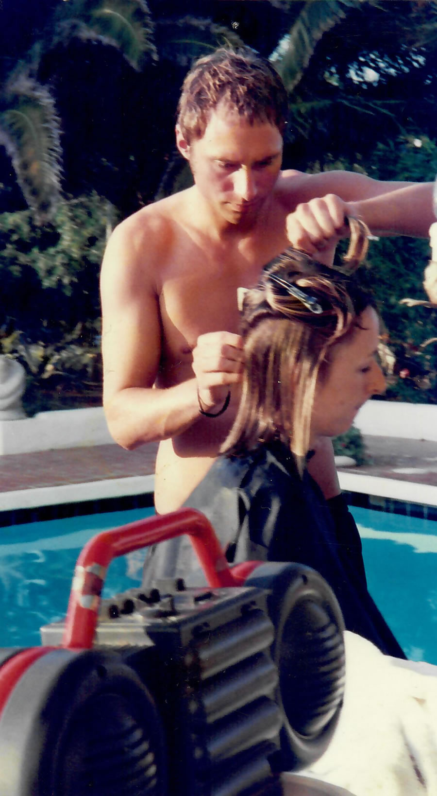 Nach meiner Meisterschule nahm ich mir eine Auszeit auf Ibiza – dort, in einem kleinen Turmzimmer bei einer Künstlerin, schnitt ich Haare am Pool, am Strand und oft bis tief in die Nacht. Tagsüber Sonne, abends Techno, Freiheit und Kreativität – das war mein Leben.